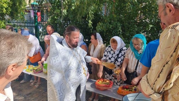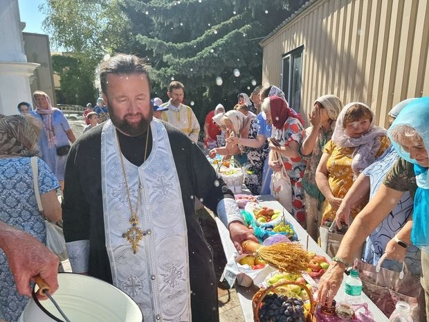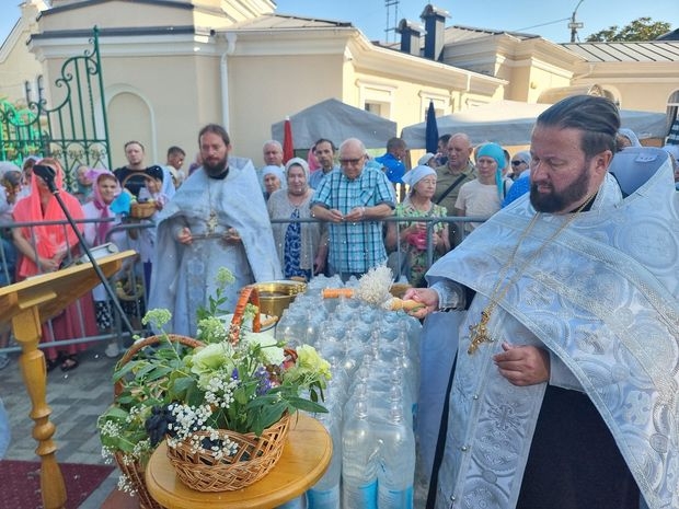 Утром 19 августа служение служение Божественной литургии совершил настоятель Петропавловского собора, секретарь Крымской митрополии протоиерей Александр Якушечкин в сослужении протоиерея Василия Корнуты, протоиерея Василия Павлова, протоиерея Игоря Рогатенюка и протодиакона Сергия Андреева. Проповедь после пения запричастного стиха произнес протоиерей. Александр Якушечкин. За богослужением были вознесены особые прошения и молитвы о Святой Руси. После отпуста литургии во дворе храма был совершен водосвятный молебен с чтением молитв на благословение винограда и плодов нового урожая.
