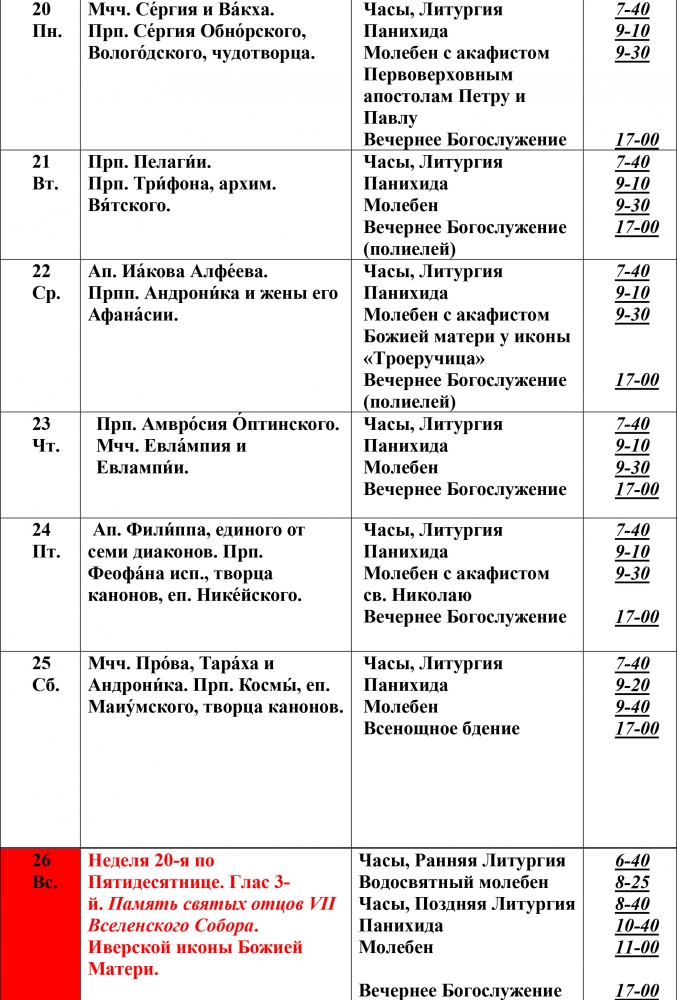 - Богослужения в Неделю 25-ю по Пятидесятнице